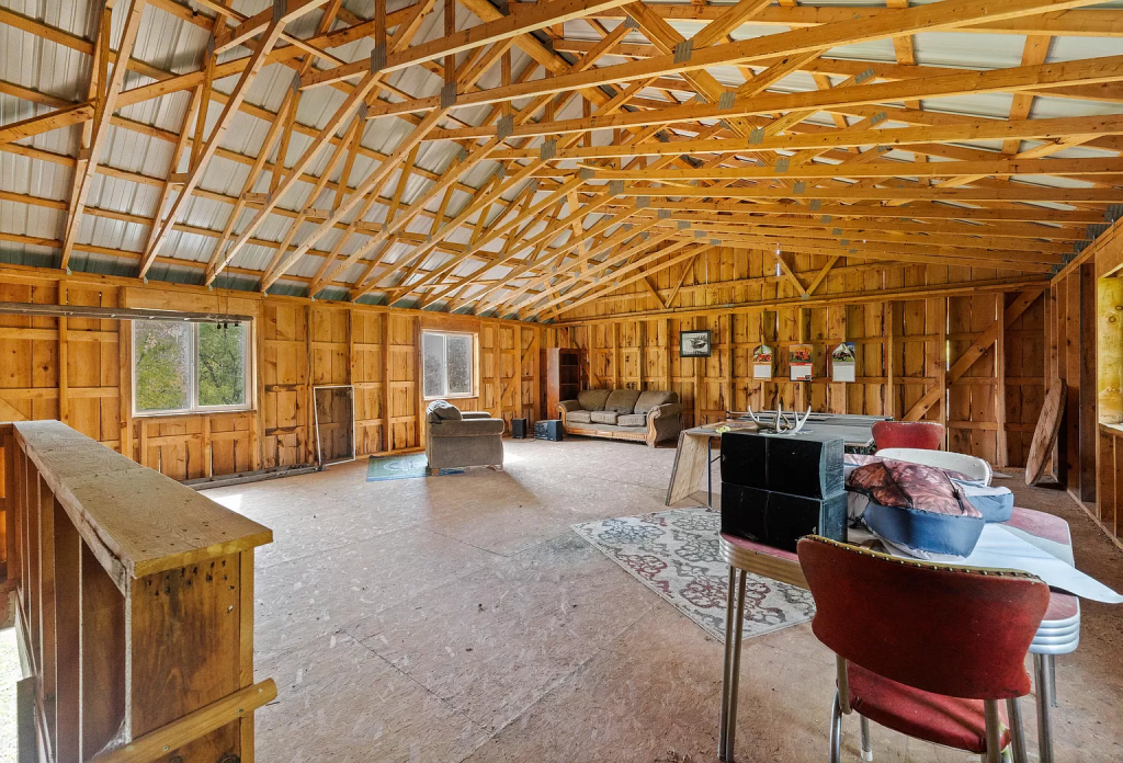 Above is the “outbuilding” with a 2 car garage on the bottom where the tractor was, but on the second floor – 700sq ft for a potential game room.