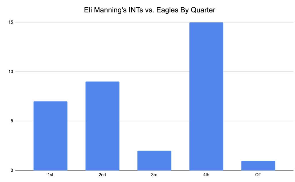 “In Philadelphia, of course, Manning’s legacy will be his generosity. His 37 interceptions against the Eagles (including playoffs) are more than he threw against any other team in his 16-year career. Let’s revisit those memorable moments of kindness.”