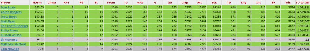 In that same breath, you can see QBs at the bottom that got in because of 2 championships.