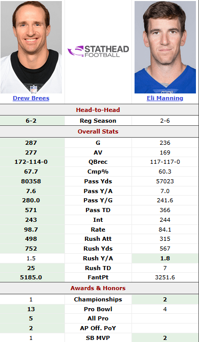 Brees smashes him. 13 pro bowls, 5 All Pro, 1 SB?