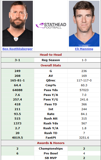 What about Big Ben? He also has 2 SB, so he gets in over Manning.