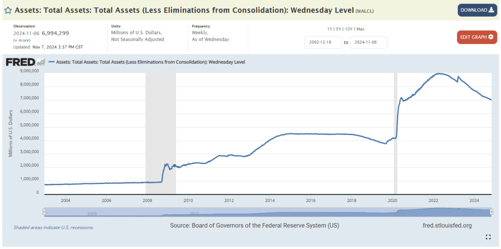 But the Fed hit peak insanity at approximately $9T in 2022. Since then, they stopped buying and have been selling into strength.