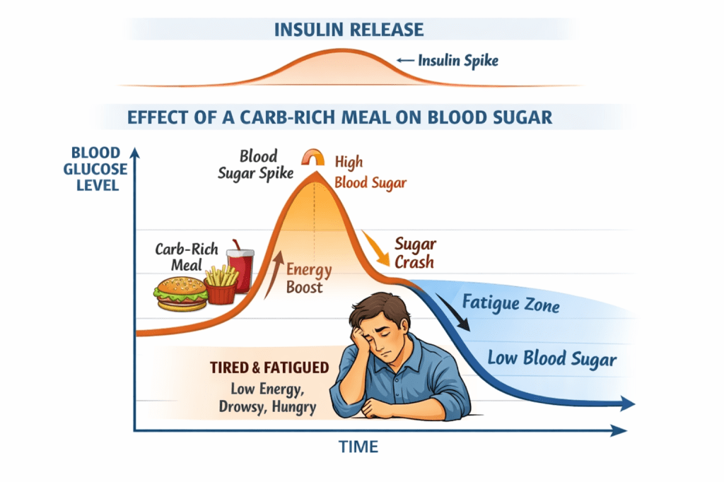 One thing the chart above misses, is that ghrelin is the “hunger” hormone and it can be triggered when glucagon is released into your bloodstream in search of glucose – this hunger hormone then tells you to eat. So you pound yourself full with a plate of pasta, you spike your blood sugar to take the excess glucose out of it, then the insulin smashes down your blood glucose levels, makes you tired and hungry. THAT is because most of the foods I ate were a high percentage of carbohydrates.