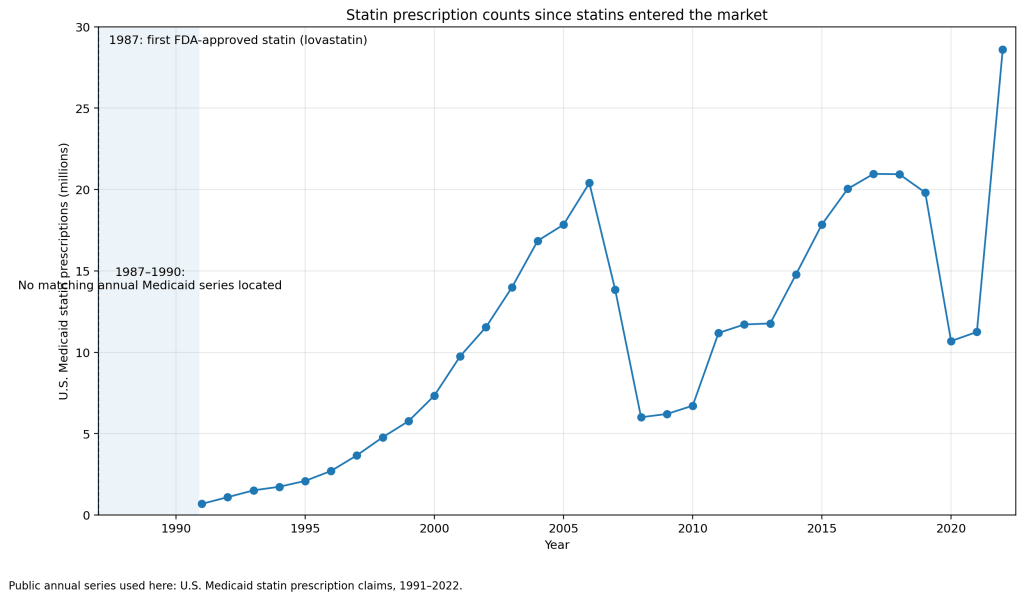If you look at the above, alzheimers was discovered in 1906. Below, you can see statin prescriptions since 1990 or so. Statins reduce cholesterol. Your brain is made of cholesterol. They told you to stop eating food rich in cholesterol because it will kill you.
