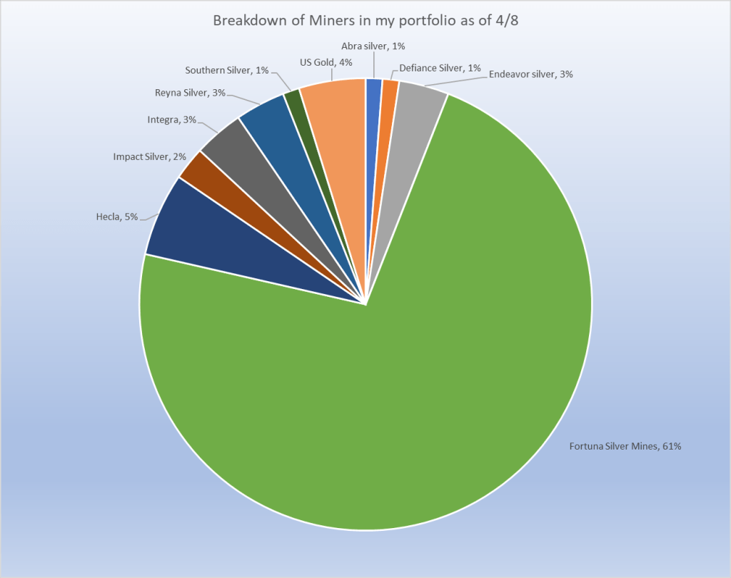 Strategic Plan: Gold is going sideways while RSIs of gold and all miners are creeping down. It is looking like a coiled move is coming, but I want to wait a bit for RSIs to head to 40 before I re-engage. I bought in a bit much on US gold, Reyna, Integra, and Troilus as I was able to get these at the discount window. Reyna should have some drill news soon, Troilus has a PFS coming in 1-2 months, Integra is just straight up being overlooked, and US gold was a steal at $6.11 where it was $17 last summer and some miner analysts love them. When the sector heats up, all of these are an easy double in a short period of time and I’ll probably take 1/2 off the table with them. My hope is a double in these 4 by end of June based on how the 2020 move went. All of these have been over double price in the last year or so and it’s a matter of interest in the sector coming back where these will all levitate up quickly above the trash cousins they have. Of those 4, Reyna is my highest risk but I’m rolling the dice on another MAG here as this was part of MAG early on.
