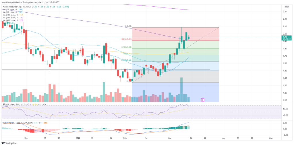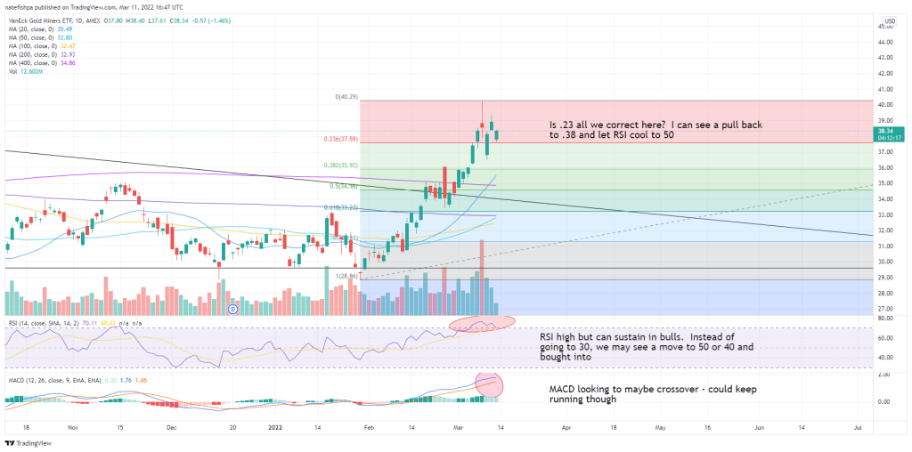 Looking further on the charts, the Fib retrace to .38. RSI 57. IF I get in here, I may have a 10-15% downside on a strong metals pullback turning me into a bag holder – sort of what I was talking about above. I’m kind of ok with that, but want to commit all resources I can to a much higher upside with FSM in the shorter term. I want to wait until that triangle is defeated first. I’ll ride a wave higher, but let someone else hold this for 1-2 months.