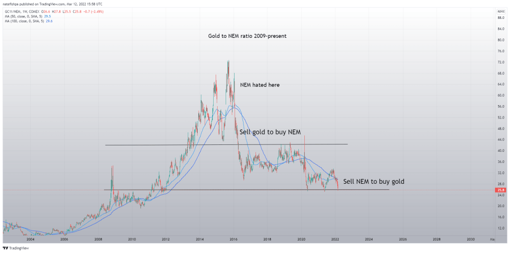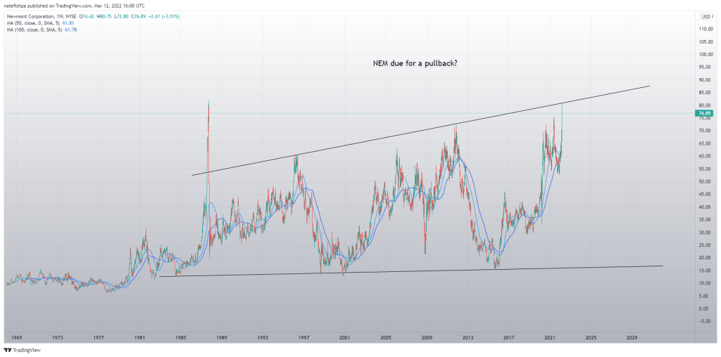 Look at NEM chart? To me, Newmont is THE best gold miner with the lowest risk. But that doesn’t mean I’m buying them, right now.