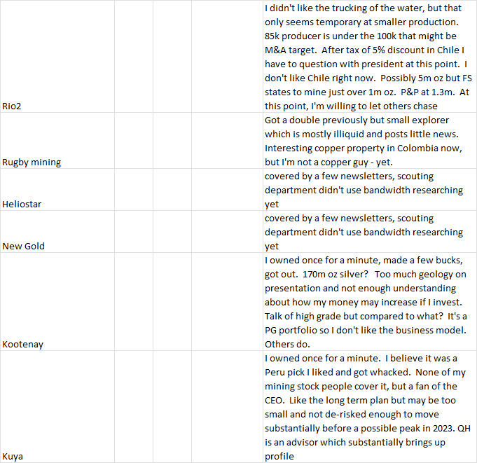 Lower minor leagues – these are names the mining stock guys have talked about and my scouting department hasn’t been out to visit them, OR a preview of the company didn’t get the scout’s attention.